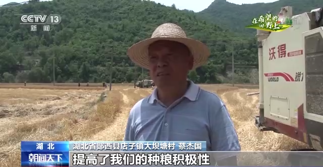 湖北省鄖西縣店子鎮(zhèn)大壩塘村 蔡杰國:我們也很滿意,提高了我們的種糧積極性。今天收割完了,明天就可以機(jī)械犁地,犁地結(jié)束后,接著就插秧。