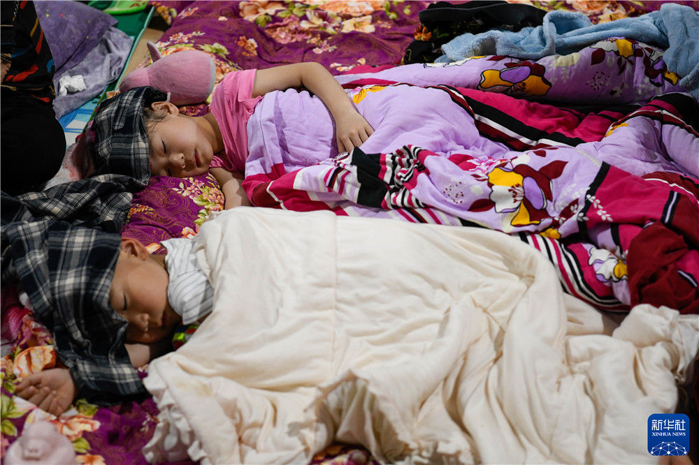 6月2日凌晨,小朋友在四川雅安市寶興縣體育館安置點內(nèi)休息。新華社記者 胥冰潔 攝