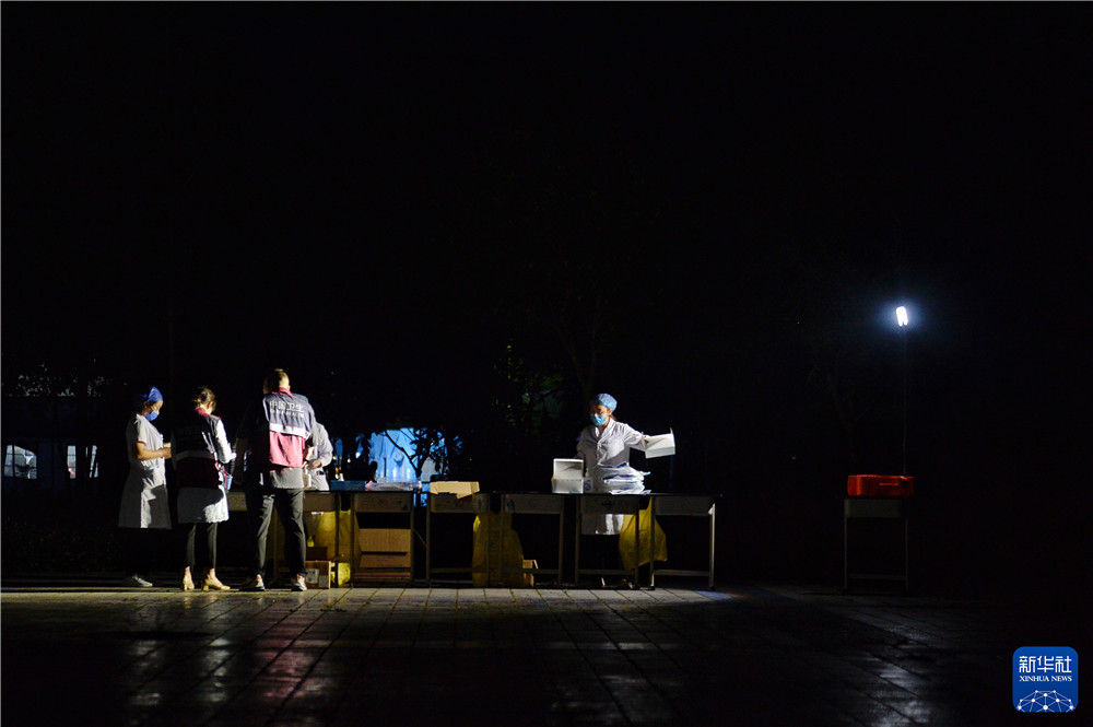 6月1日,在四川雅安市蘆山縣太平鎮(zhèn)太平中學(xué)安置點內(nèi),醫(yī)護(hù)人員堅守崗位,隨時解決受災(zāi)群眾醫(yī)療衛(wèi)生需求。新華社記者 劉坤 攝