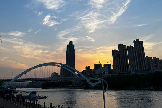 5月23日,晚霞映襯的黃河蘭州段。新華社記者張玉潔 攝