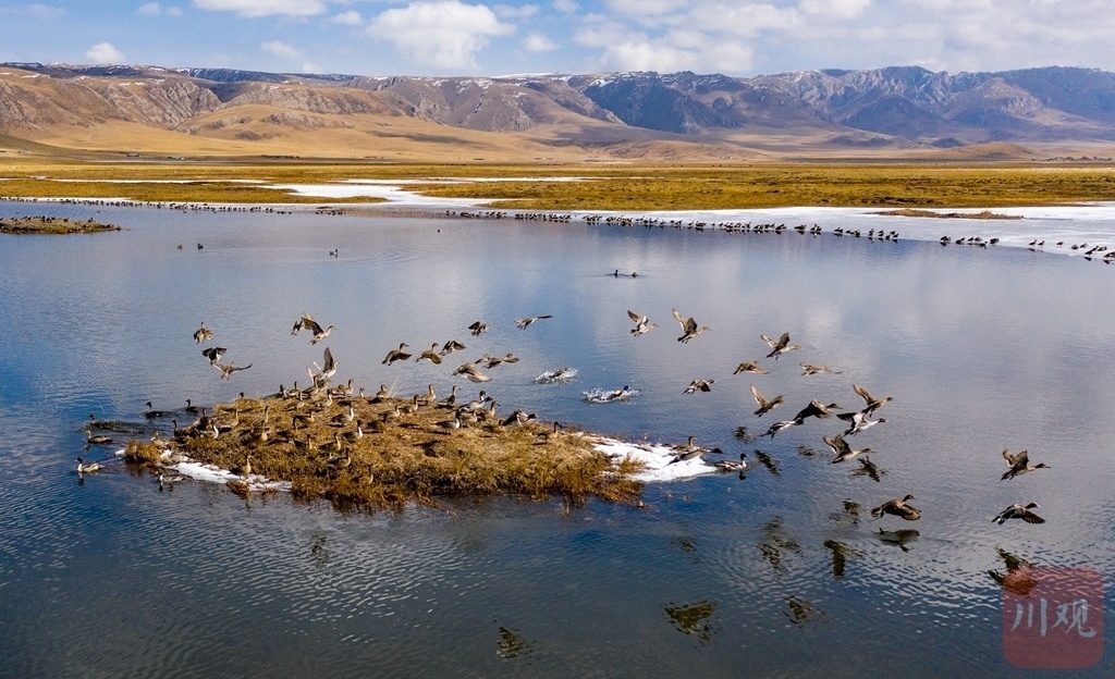 川西高原黃河上游生態(tài)保護(hù),昔日“荒草灘”成為珍稀鳥類安居的濕地樂園。四川在線記者 尹鋼 攝