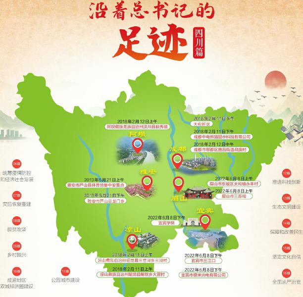 從2013年初夏到2022年盛夏,巴蜀大地留下了習(xí)近平總書(shū)記堅(jiān)實(shí)的足跡;從過(guò)去、現(xiàn)在到未來(lái),四川正沿著習(xí)近平總書(shū)記指引的方向堅(jiān)定前行。
