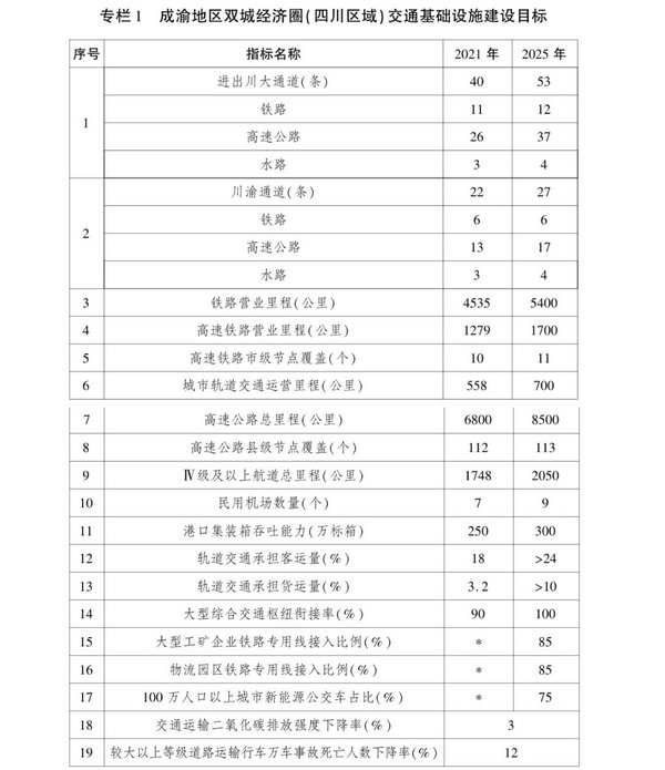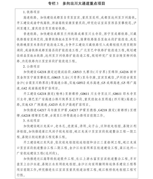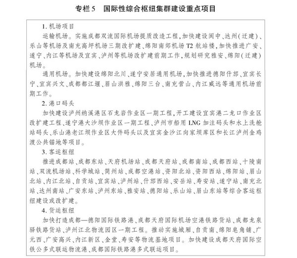 《規(guī)劃》提出,將重點實施暢通多向進(jìn)出川運(yùn)輸通道、完善雙核輻射綜合交通網(wǎng)、建設(shè)高水平國際樞紐集群、打造高品質(zhì)出行服務(wù)體系、構(gòu)建高效率貨運(yùn)物流體系、打造全國智能交通新高地、提升交通綠色安全發(fā)展水平、創(chuàng)建一體化協(xié)同治理樣板等8項重點任務(wù)。