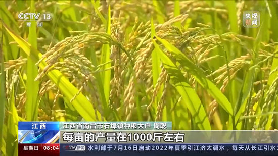 江西省南昌市石埠鎮(zhèn)種糧大戶(hù) 周聰:我今年種了1000多畝早稻示范田,種的都是優(yōu)質(zhì)稻,抗病蟲(chóng)害抗倒伏,每畝的產(chǎn)量在1000斤左右,比去年(每畝)增加了100多斤。