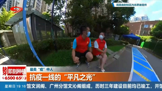 志愿者 嚴(yán)小莉:小區(qū)樓下的花園里面坐了兩三個(gè)小時(shí),后面想想沒辦法,這個(gè)疫情大家都是局中人,沒有人可以置身事外。所以我們就想既然回不去家的話,我們兩個(gè)就一起在這里做志愿者。