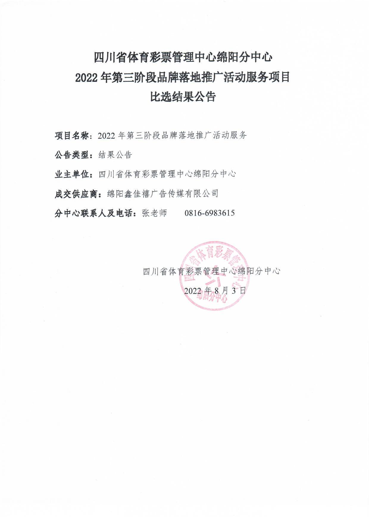 四川省體育彩票管理中心綿陽(yáng)分中心2022年第三階段品牌落地推廣活動(dòng)服務(wù)項(xiàng)目比選結(jié)果公告