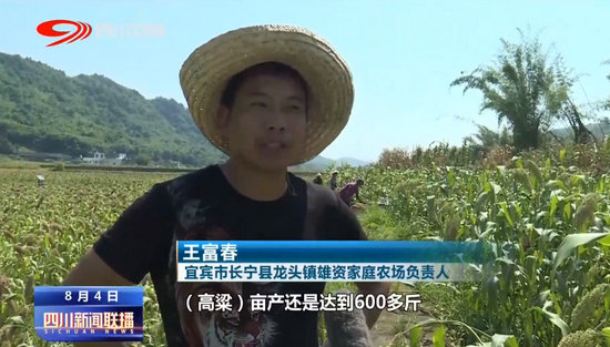 宜賓市長(zhǎng)寧縣龍頭鎮(zhèn)雄資家庭農(nóng)場(chǎng)負(fù)責(zé)人 王富春:(高粱)畝產(chǎn)達(dá)到600斤,大豆可能有100斤以上,大概畝產(chǎn)的價(jià)值在3000塊錢(qián)以上,我一共種了500多畝,可能150萬(wàn)以上。