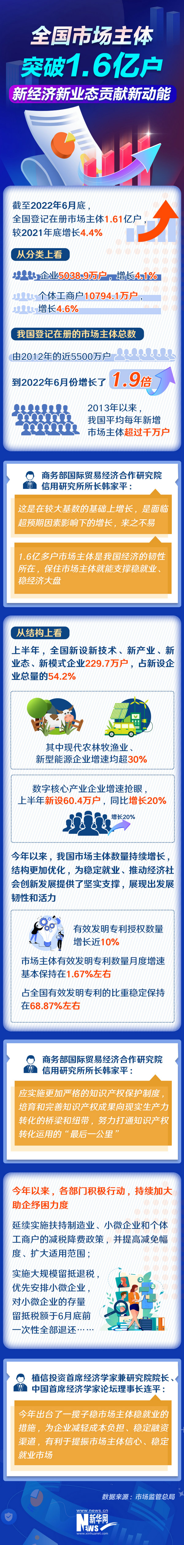 全國登記在冊市場主體總數(shù)突破1.6億戶,帶動就業(yè)近3億人,2013年以來新增的涉稅市場主體去年納稅達到4.76萬億元。這有力印證了我國經(jīng)濟的強大韌性,億戶市場主體是穩(wěn)經(jīng)濟的底氣所在。