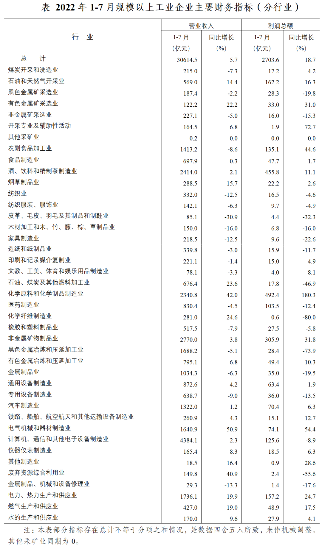 二、規(guī)模以上工業(yè)企業(yè)利潤總額、營業(yè)收入等指標的增速均按可比口徑計算。報告期數(shù)據(jù)與上年所公布的同指標數(shù)據(jù)之間有不可比因素,不能直接相比計算增速。其主要原因是:(一)根據(jù)統(tǒng)計制度,每年定期對規(guī)模以上工業(yè)企業(yè)調(diào)查范圍進行調(diào)整。每年有部分企業(yè)達到規(guī)模標準納入調(diào)查范圍,也有部分企業(yè)因規(guī)模變小而退出調(diào)查范圍,還有新建投產(chǎn)企業(yè)、破產(chǎn)、注(吊)銷企業(yè)等變化。(二)加強統(tǒng)計執(zhí)法,對統(tǒng)計執(zhí)法檢查中發(fā)現(xiàn)的不符合規(guī)模以上工業(yè)統(tǒng)計要求的企業(yè)進行了清理,對相關基數(shù)依規(guī)進行了修正。(三)加強數(shù)據(jù)質(zhì)量管理,剔除跨地區(qū)、跨行業(yè)重復統(tǒng)計數(shù)據(jù)。