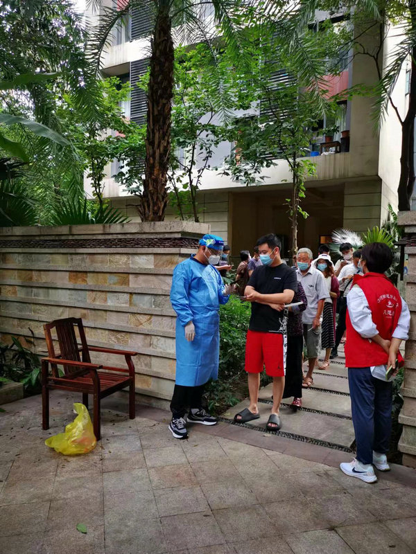 9月4日,是四川省高級人民法院刑二庭書記員鄧念嵐在成都市金牛區(qū)茶店子街道化成社區(qū)報(bào)到“上崗”的第3天。疫情發(fā)生以來,他常會利用下班時(shí)間在小區(qū)核酸采樣點(diǎn)幫忙。9月1日,成都發(fā)布通告宣布全體居民原則居家之后,他開始在社區(qū)開展志愿服務(wù)。