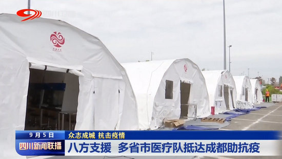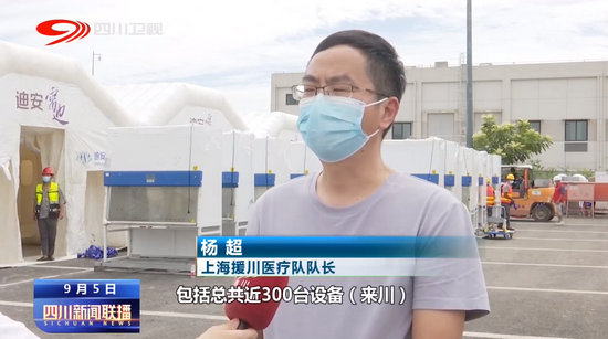 上海援川醫(yī)療隊隊長 楊超:我們籌集了230人,總共近300臺設備(來川),9月4日晚上到達成都,(就)立馬投入了氣膜搭建工作,我們整體接收樣本(檢測能力)在20萬管,支援成都的抗疫工作。