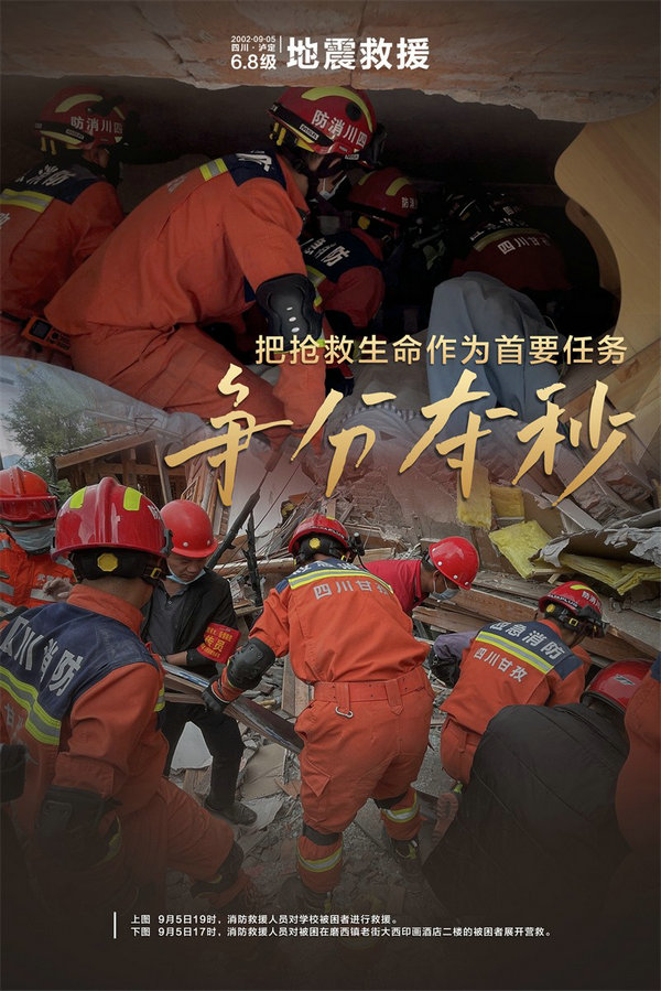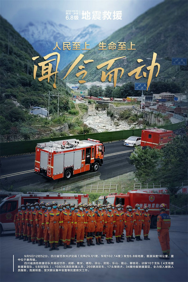 甘孜、成都、雅安、德陽、綿陽、涼山、資陽、樂山、眉山、攀枝花、訓(xùn)保支隊(duì),由1086名消防救援人員、268輛消防車、17頭搜救犬、34艘舟艇組成的消防救援力量,在四川省消防救援總隊(duì)統(tǒng)一指揮調(diào)度下,兵分多路奔赴災(zāi)區(qū),在瀘定在石棉,在深山在峽谷,在高空在激流,開展著一次又一次生命營(yíng)救,進(jìn)行著一輪又一輪涉水拔山,上演著一幕又一幕感人瞬間。