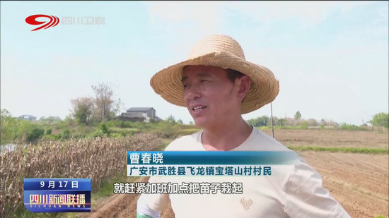 武勝縣飛龍鎮(zhèn)寶塔山村村民 曹春曉:趁著目前這個雨下了幾天,就趕緊加班加點把苗子栽起,最好得到好的收成。