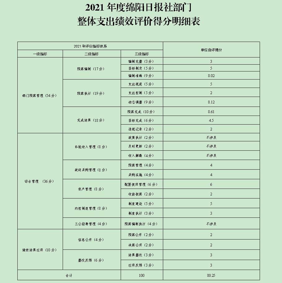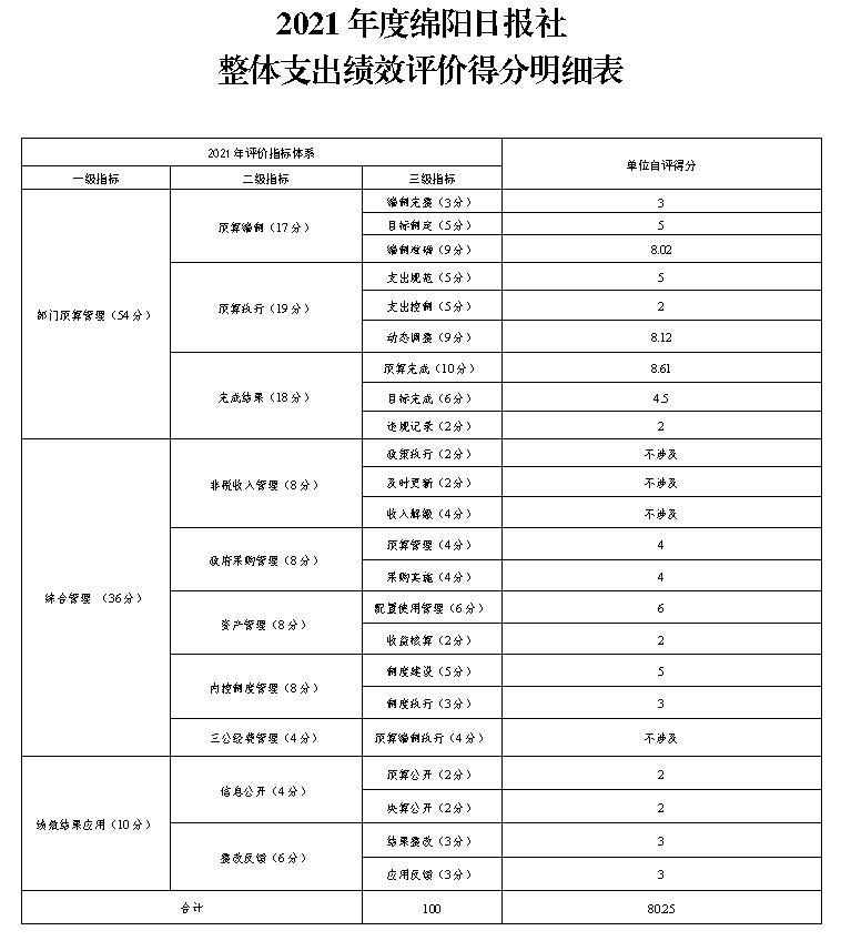 附件:2021年度綿陽日報社整體支出績效評價得分明細(xì)表