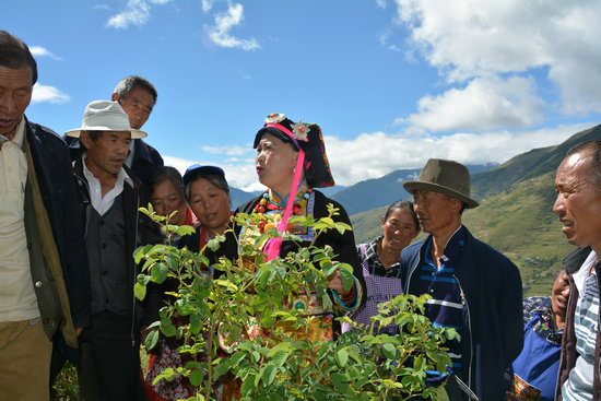 陳望慧向村民講解玫瑰種植和管理技術(shù)。資料圖 小金縣委宣傳部提供