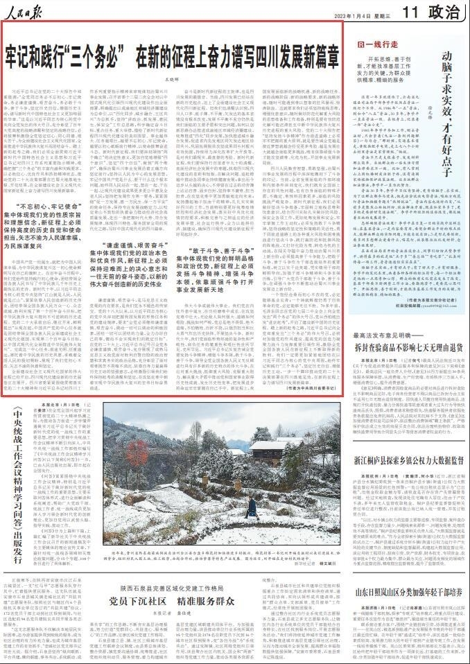 1月4日,省委書(shū)記王曉暉在《人民日?qǐng)?bào)》發(fā)表了署名文章《牢記和踐行“三個(gè)務(wù)必” 在新的征程上奮力譜寫四川發(fā)展新篇章》,川觀新聞全文轉(zhuǎn)載如下: