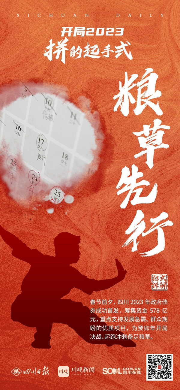 各地各部門將以什么樣的“起手式”開啟新年新征程?今日起,四川日報全媒體推出主題策劃——“開局2023·拼的起手式”,聚焦經(jīng)濟建設一線,以“招”見實。敬請垂注。