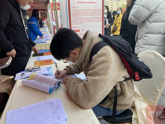 來自廣安區(qū)的王柯正在填寫應(yīng)聘登記表。鄧涵予 攝