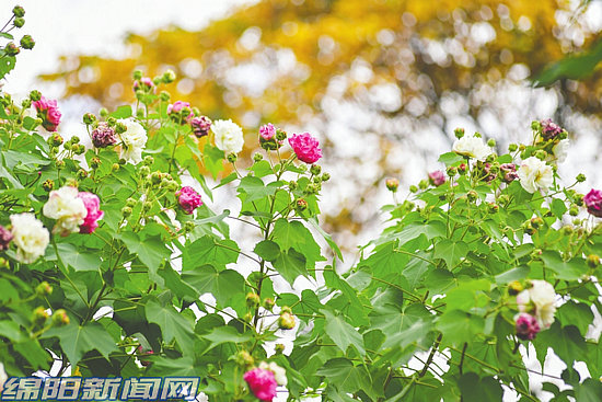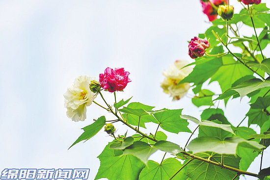 連日來,綿陽城區(qū)芙蓉花陸續(xù)綻放,道旁、江畔,一簇簇盛開的芙蓉花掛滿枝頭,粉色、紫色、白色的花朵層層疊疊,在藍(lán)天映襯下,顯得更加明艷。