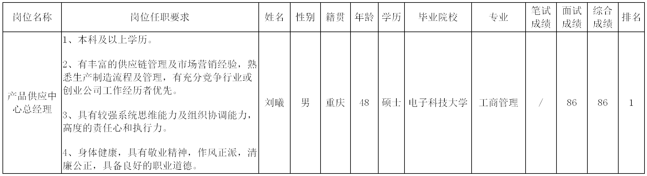 根據四川長虹智慧健康科技有限公司發(fā)布的招聘公告及招聘相關規(guī)定,經筆試、面試等程序,現將筆試(面試)成績予以公示。