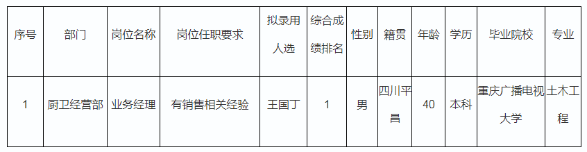 根據(jù)合肥長虹美菱生活電器有限公司發(fā)布的招聘公告及招聘相關規(guī)定,經(jīng)筆試、面試、考察、體檢等程序,擬錄用陳洋等同志到合肥長虹美菱生活電器有限公司工作,現(xiàn)予以公示,具體情況如下: