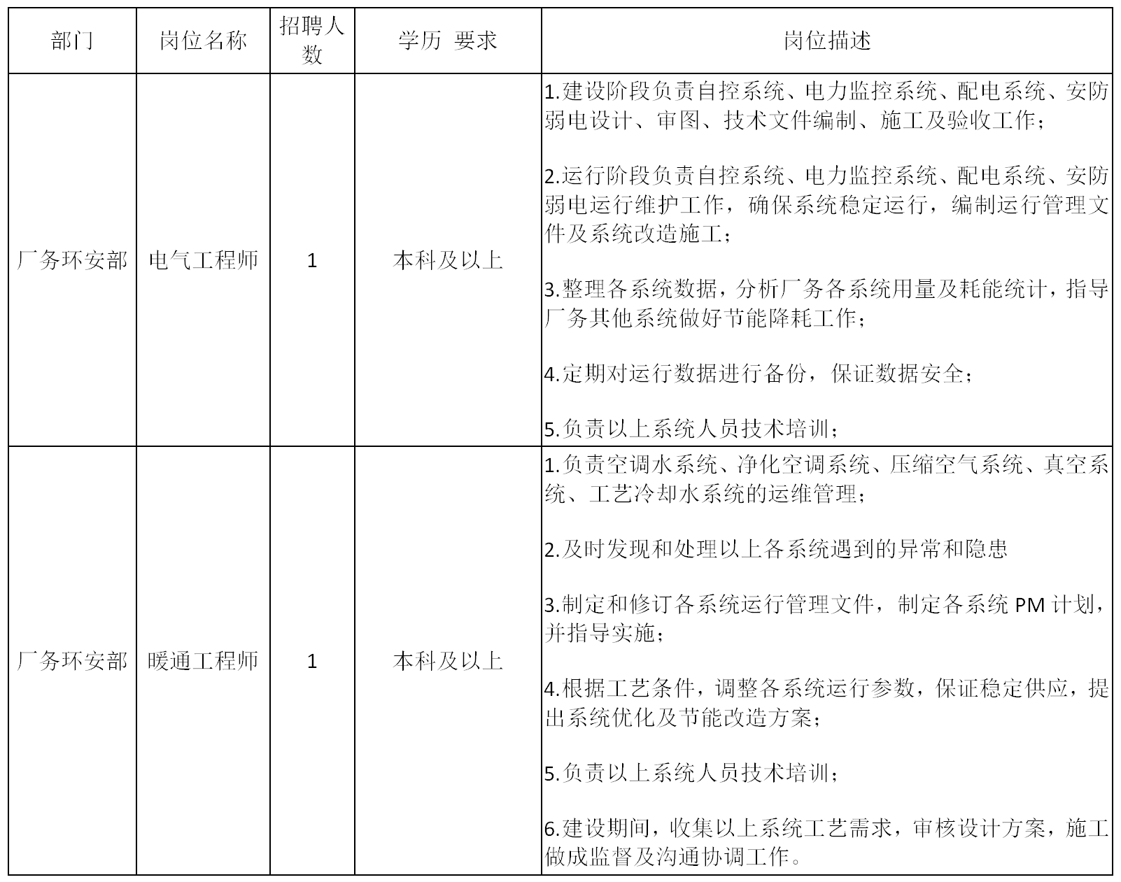 ?。?)具有芯片制造、芯片封測(cè)、新能源、醫(yī)藥、面板等行業(yè)廠務(wù)暖通運(yùn)維管理或施工管理經(jīng)驗(yàn)5年以上;
