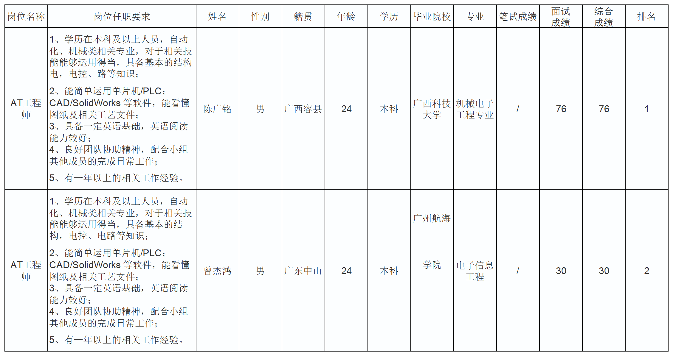 根據(jù)廣東長(zhǎng)虹電子有限公司發(fā)布的招聘公告及招聘相關(guān)規(guī)定,經(jīng)面試等程序,現(xiàn)將面試成績(jī)予以公示。