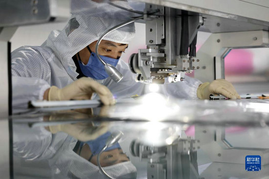 1月5日,在合肥市瑤海區(qū)長三角數(shù)字科技示范園,合肥統(tǒng)旭智慧科技有限公司的員工在智慧顯示屏生產(chǎn)線上作業(yè)。新華社發(fā)(解琛 攝)