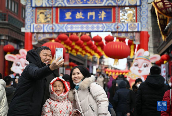 1月26日,游客在天津古文化街游玩時留影。新華社記者 趙子碩 攝