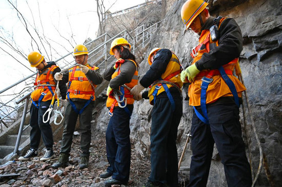 月山工務(wù)段的橋隧工正在檢查安全繩索。(受訪者供圖)