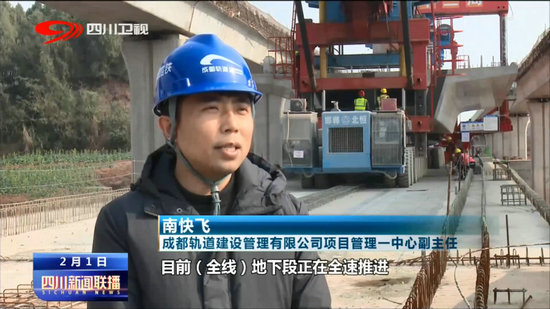 成都軌道建設(shè)管理有限公司項目管理一中心副主任 南快飛:目前,(全線)地下段正在全速推進盾構(gòu)掘進和鋪軌作業(yè),高架段正在進行預制梁架設(shè)工作。全體參建人員熱情高漲、干勁十足,正全力推進工程建設(shè)。