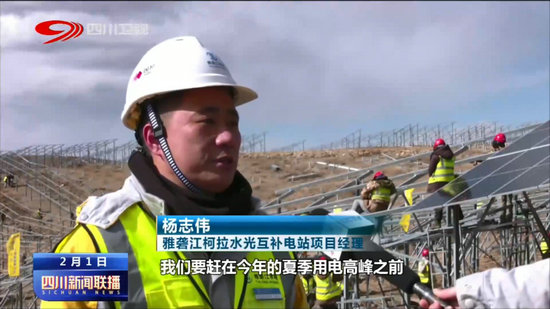 雅礱江柯拉水光互補電站項目經(jīng)理 楊志偉:我們要趕在今年的夏季用電高峰之前,我們一定要投產(chǎn)發(fā)電,將我們的清潔能源送到千家萬戶。
