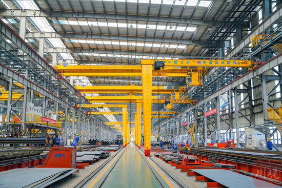 1月29日,中國(guó)五冶(成都)建筑科技產(chǎn)業(yè)園鋼結(jié)構(gòu)基地車間內(nèi)工人正在加緊生產(chǎn)。