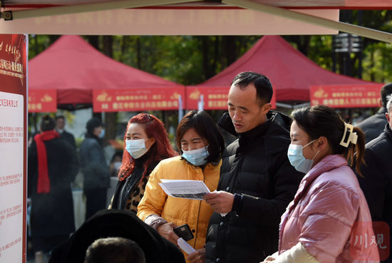 1月29日,四川舉行春風(fēng)“送崗”行動(dòng),為農(nóng)村勞動(dòng)者、就業(yè)困難人員及有用工需求的用人單位搭建平臺(tái),嘗試破解重點(diǎn)群體“就業(yè)難”。這一天,10萬(wàn)人涌入招聘會(huì),與3000多家企業(yè)面對(duì)面。