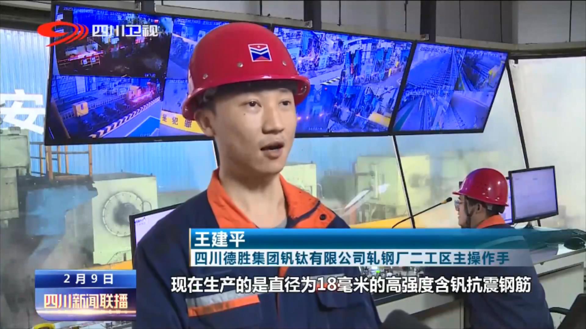 四川德勝集團釩鈦有限公司軋鋼廠二工區(qū)主操作手 王建平:現(xiàn)在生產(chǎn)的是直徑為18毫米的高強度含釩抗震鋼筋,這批鋼筋也將馬上發(fā)往川藏線的建設現(xiàn)場。