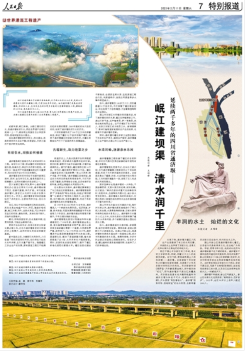 成都平原,岷江奔涌。從都江堰無(wú)壩引水,到通濟(jì)堰有壩引水,兩處世界遺產(chǎn)在岷江流域一上一下,都體現(xiàn)出我國(guó)自古以來(lái)因勢(shì)利導(dǎo)、因地制宜的治水理念。