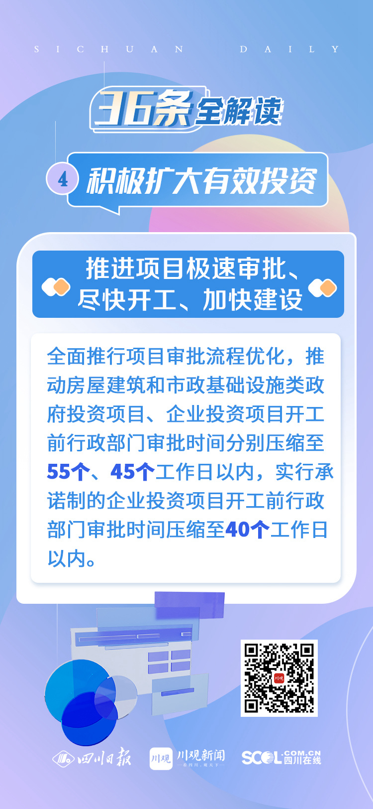 與此相呼應,“36條”要求全面推行項目審批流程優(yōu)化,關鍵詞依然是“提速”。比如,明確提出,推動房屋建筑和市政基礎設施類政府投資項目、企業(yè)投資項目開工前行政部門審批時間分別壓縮至55個、45個工作日以內(nèi),實行承諾制的企業(yè)投資項目開工前行政部門審批時間壓縮至40個工作日以內(nèi)。