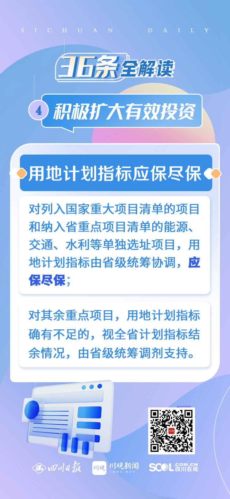 跑出項目建設“加速度”,突破要素制約是關鍵。“36條”在強化用地、資金等要素保障方面,作出部署安排。