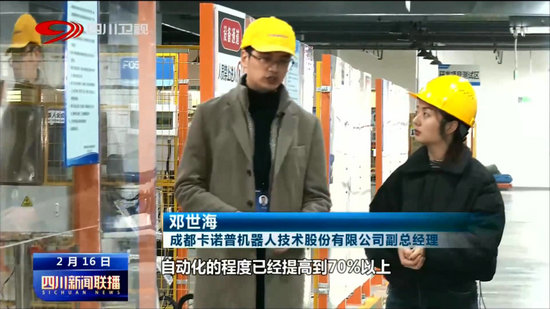 成都卡諾普機(jī)器人技術(shù)股份有限公司 副總經(jīng)理 鄧世海:這個(gè)生產(chǎn)測(cè)試環(huán)節(jié)(車間),自動(dòng)化的程度已經(jīng)提高到70%以上,讓我們整個(gè)產(chǎn)品不管是在品質(zhì)上,以及本身的性能都能夠有一個(gè)大幅的提高。