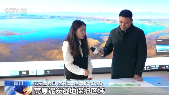 四川省若爾蓋縣自然資源局副局長 陳娟黎:有幾塊深綠色的圖,是我們?nèi)魻柹w獨有的高原泥炭濕地保護區(qū)域,按照國家公園建設(shè)要求,在這個區(qū)域我們會對它進行一個更加嚴格的保護。