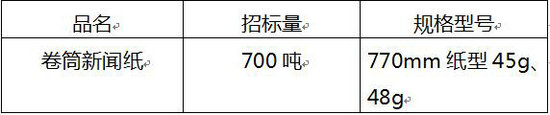 綿陽市欣文印務(wù)有限公司計劃公開招標(biāo)采購770mm紙型45、48克卷筒新聞紙約700噸(此數(shù)量為年計劃用量,實際采購數(shù)量和規(guī)格按我方下達(dá)的送貨計劃執(zhí)行),歡迎新聞紙生產(chǎn)企業(yè)和經(jīng)銷企業(yè)參與投標(biāo)。相關(guān)事項公告如下: