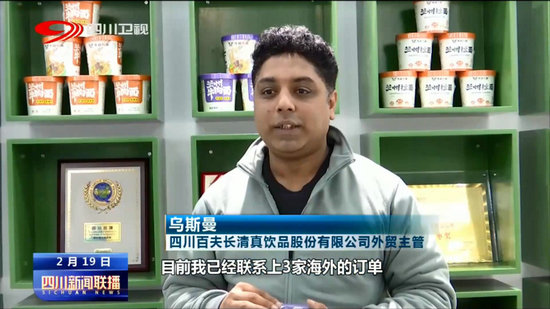 四川百夫長(zhǎng)清真飲品股份有限公司外貿(mào)主管 烏斯曼:我來(lái)自巴基斯坦,今年1月正式入職這里工作,目前我已經(jīng)聯(lián)系上3家海外的訂單,預(yù)計(jì)有300多萬(wàn)(元)人民幣,我相信能在廣元有更好地發(fā)展。
