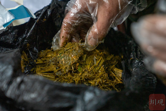 正如付明霞所說。2月10日下午5點左右,記者在大熊貓國家公園寶興片區(qū)采訪時,正趕上大熊貓國家公園寶興縣蜂桶寨中心管護站的巡護員張玉兵和兩位同事下山,他們手里拿著的是當天最大的收獲——兩份大熊貓剛排泄不久的糞便。“還很新鮮,是竹葉便,你們聞聞,沒有異味,還有一點竹葉的味道。”張玉兵根據(jù)糞便的大小初步判斷,這是一大一小兩只大熊貓留下的。