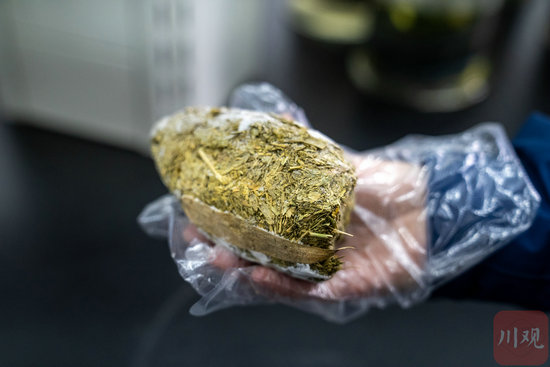 糞便檢驗是主要手段。采訪中,自稱“撿屎官”的付明霞從實驗室的冰柜中,拿出一份大熊貓糞便,這是她的同事去年11月份撿到的。
