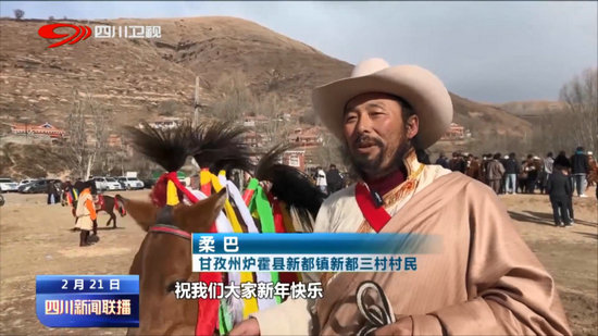 這邊載歌載舞,那邊駿馬馳騁。爐霍縣新都鎮(zhèn)、松潘縣川主寺鎮(zhèn)、稻城縣桑堆鎮(zhèn)的賽馬比賽歡聲雷動,奔馳的駿馬傳遞著著藏族兒女對新年豪邁的期許。