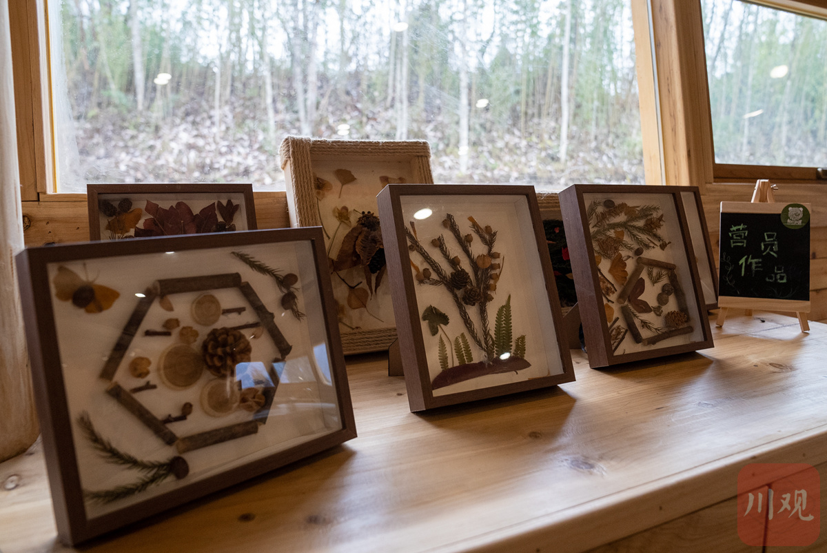寶興縣鄧池溝村的大熊貓國際溯源營地,參加自然教育的學(xué)生制作的手工藝品。盧春陽 攝