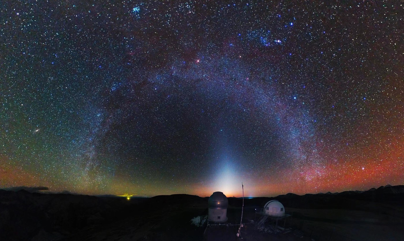 劉煜尤其中意稻城的夜晚。不同于城市夜空總籠罩著一層人工光造成的微紅光輝,這里的黑夜很純粹,“月亮是唯一的光源,穩(wěn)定的大氣層,使得這里數(shù)以萬計的星星甚至不會忽明忽暗地‘眨眼睛’”。周邊極低的人口密度,使燈光污染幾乎不會影響夜天文觀測工作。