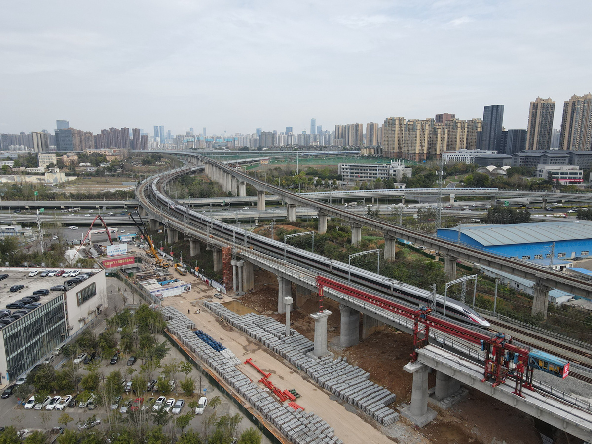 成自宜高鐵最后一片梁架設(shè)。成蘭鐵路公司 供圖