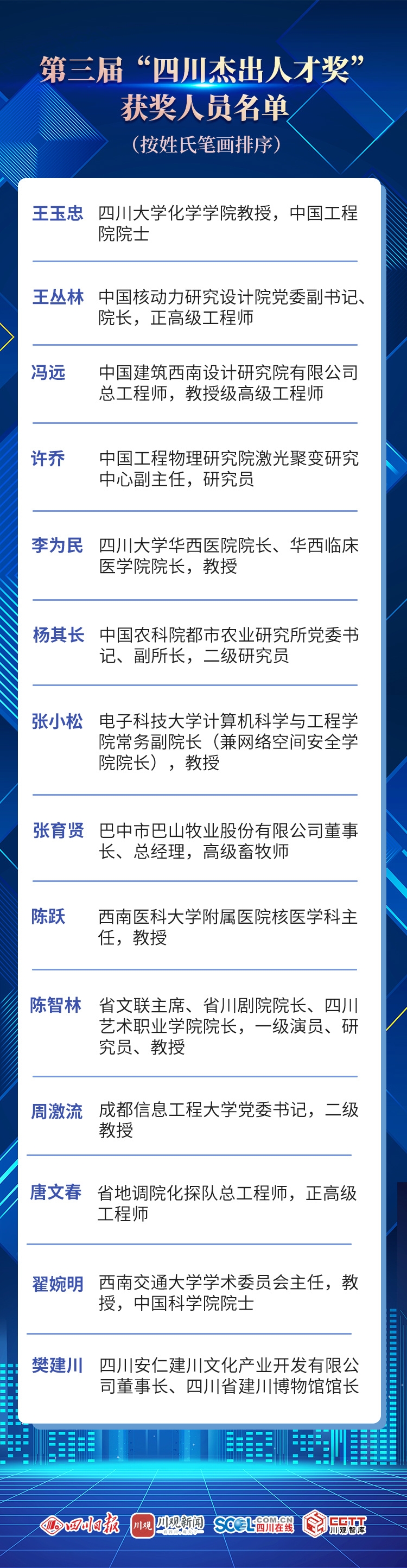 第三屆“四川杰出人才獎(jiǎng)”獲獎(jiǎng)人員名單