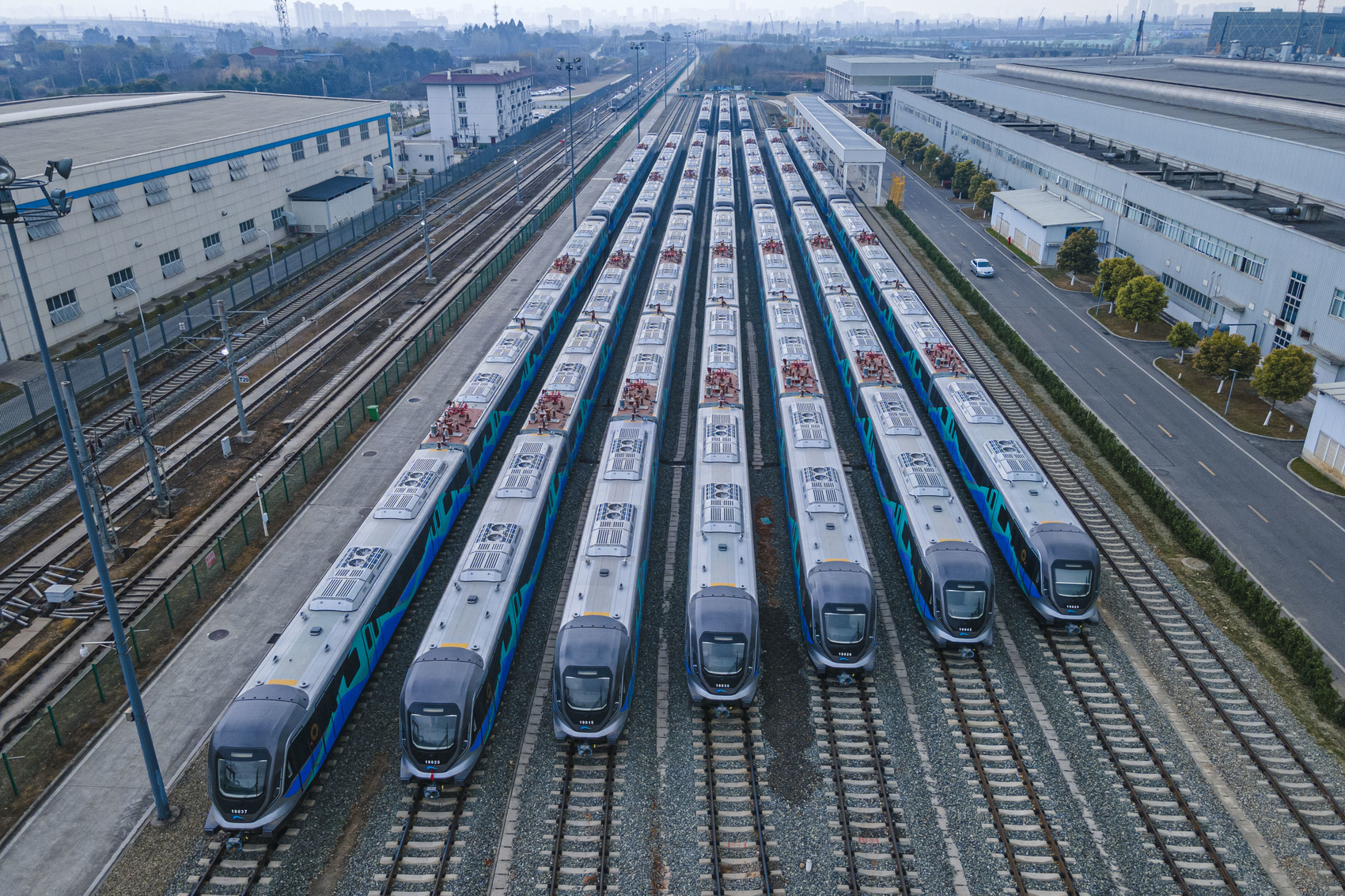 中車成都公司存車線上的地鐵19號線列車,即將交付。 中車成都公司供圖